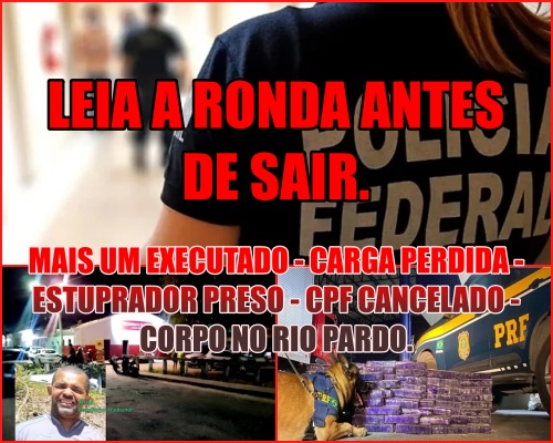 NA RONDA – Vendedor Executado – Carga de Maconha Apreendida – CPF Cancelado – Corpo Encontrado no Rio Pardo. 17 de maio de 2024 Nenhum comentário Ler mais >>