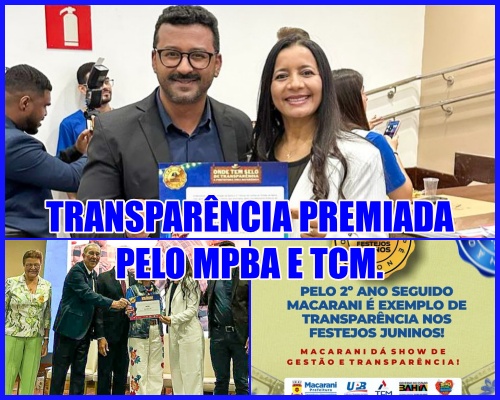 TRANSPARÊNCIA PREMIADA – Macarani recebe pelo segundo ano seguido o certificado “Transparência” concedio pelo MP e TCM. 11 de junho de 2025 Nenhum comentário Ler mais >>
