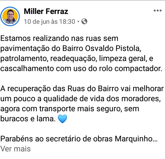 Mas, o que causou estranheza a nossa produção, é que neste caso envolvendo uma funcionária do expediente interno da Prefeitura, o Prefeito Miller Ferraz e o Secretário da Saúde se calaram sobre o assunto e não se preocuparam em correr as rádios e redes sociais para a tradicional live e entrevista. Nem mesmo um boletim contendo como está o quadro da pandemia na cidade foi emitido e no seu perfil no Facebook, o Prefeito fez a última postagem no dia 10 de junho falando sobre obras de melhoramento de ruas no Osvaldo Pistola, onde nem lembra que lá tem uma pavimentação inacabada. Ou seja: de lá para cá o Prefeito emudeceu e colocou uma pedra sobre todos os assuntos importantes.