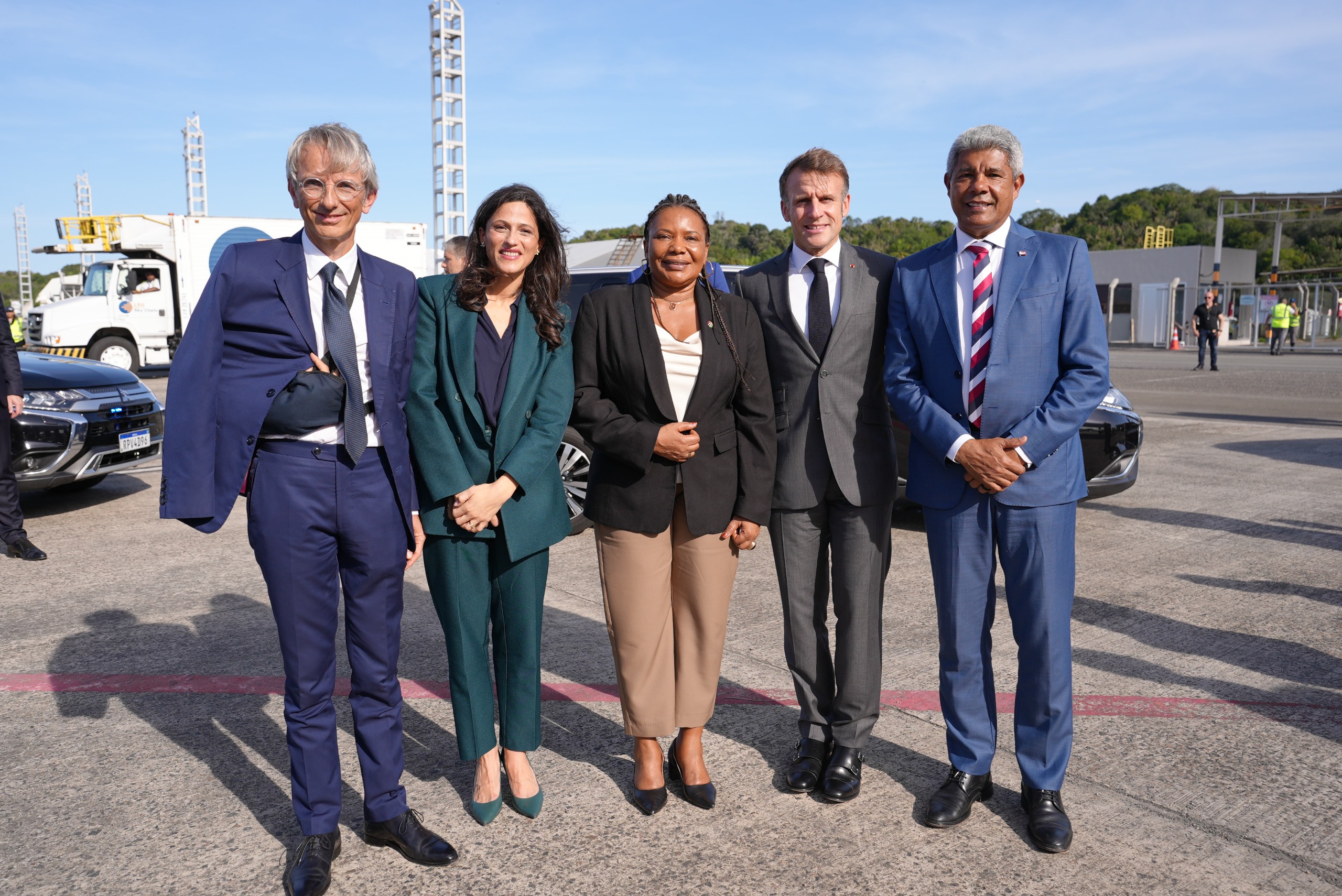 O governador Jerônimo Rodrigues recepcionou o presidente da França, Emmanuel Macron, que desembarcou no Aeroporto de Salvador na tarde desta quarta-feira (5), para o início de uma agenda dedicada à cultura e à cooperação internacional. Ao lado da ministra da Cultura, Margareth Menezes, o governador participa de compromissos que incluem visita ao Pelourinho e a abertura oficial do Festival Nosso Futuro Brasil-França: Diálogos com a África, no Museu de Arte Moderna da Bahia (MAM).