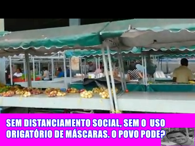Então, neste final de semana, mais precisamente no último sábado 16, o Senhor Ivanhilton Ferreira, fez questão de filmar o que está realmente ocorrendo na feira livre, onde os carros são proibidos de ficarem dentro da área de estacionamento ou de circular pelo entorno do Mercado Municipal, mas a população pode circular a vontade com ou sem máscaras em meio a barracas todas ao lado uma da outra sem nenhum distanciamento social.
