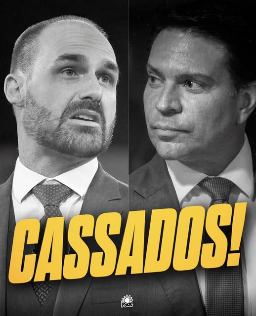 Autoexilados nos Estados Unidos, os agora ex-deputados federais Eduardo Bolsonaro (PL-SP) e Alexandre Ramagem (PL-RJ) perderam seus mandatos ao final da tarde de ontem, após decisão da Mesa Diretora da Câmara dos Deputados. Apesar de as duas cassações terem sido divulgadas praticamente ao mesmo instante, os motivos que levaram ambos a perderem suas cadeiras Autoexilados nos Estados Unidos, os agora ex-deputados federais Eduardo Bolsonaro (PL-SP) e Alexandre Ramagem (PL-RJ) perderam seus mandatos ao final da tarde de ontem, após decisão da Mesa Diretora da Câmara dos Deputados. Apesar de as duas cassações terem sido divulgadas praticamente ao mesmo instante, os motivos que levaram ambos a perderem suas cadeiras.