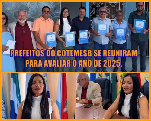 AVALIANDO E PLANEJANDO – Prefeitos e Prefeitas associados (as)ao COTEMESB se reuniram para avaliar 2025 e planejar ações para 2026. 17 de dezembro de 2025 Nenhum comentário Ler mais >>