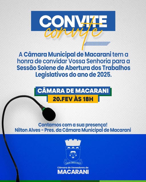 Logo mais as 19h desta quinta-feira 20 de fevereiro, a Câmara de Vereadores de Macarani abrirá suas portas para receber o público e claro, os novos vereadores que fazem parte do novo mandato iniciado no dia 1º de janeiro deste ano. Eles ficarão nas cadeiras do legislativo até 31 de dezembro de 2028 salvo algum acontecimento que incorra na interrupção de alugum mandato.