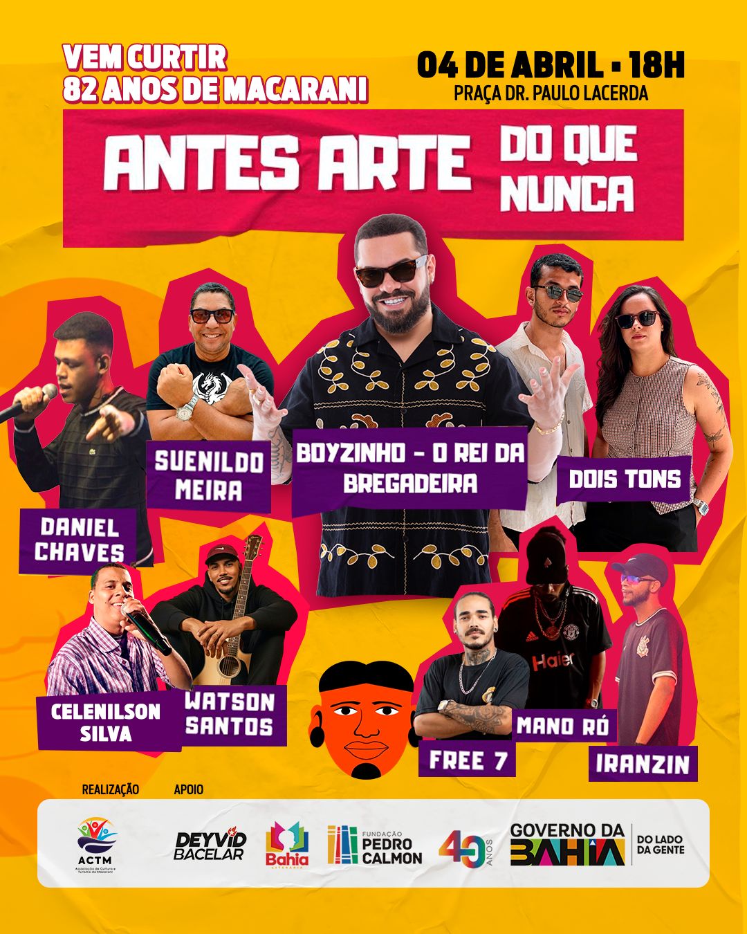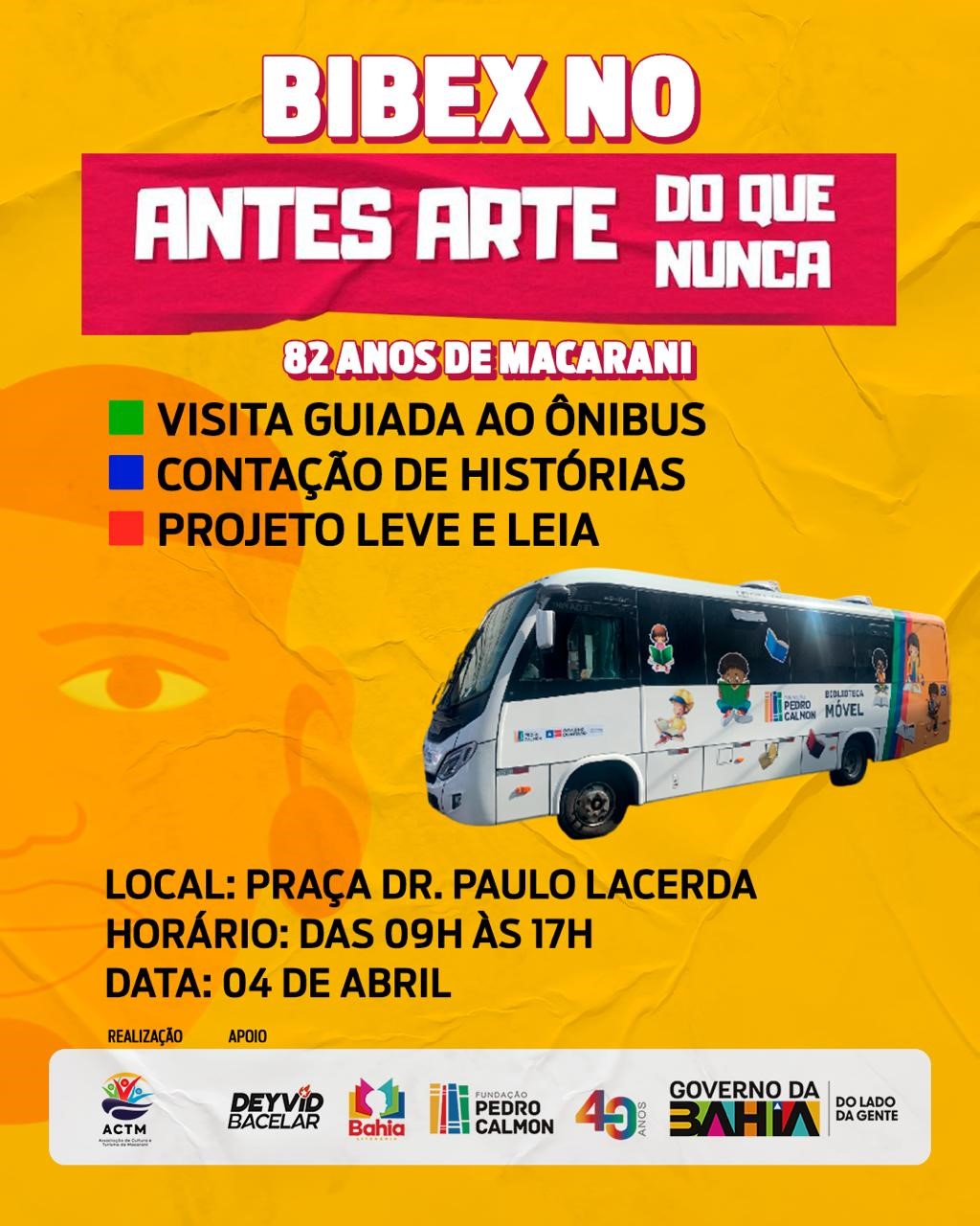 A cidade de Macarani se prepara para viver um momento especial de celebração e valorização da cultura local. Neste sábado 04 de abril, na Praça Dr. Paulo Lacerda, acontece o evento “Antes Arte do que Nunca”, uma grande mostra cultural que irá celebrar os 82 anos do município. A iniciativa é uma realização da ACTM (Associação de Cultura e Turismo de Macarani), que vem se consolidando como uma das principais articuladoras culturais da cidade, promovendo ações que fortalecem a identidade local, incentivam artistas e ampliam o acesso da população à cultura.