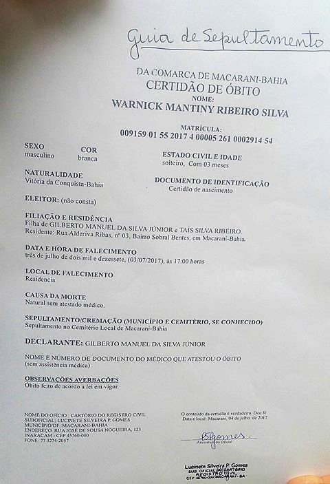 filhinho estava morto. Pedimos a Dra. Gisele, que desse o atestado de óbito,