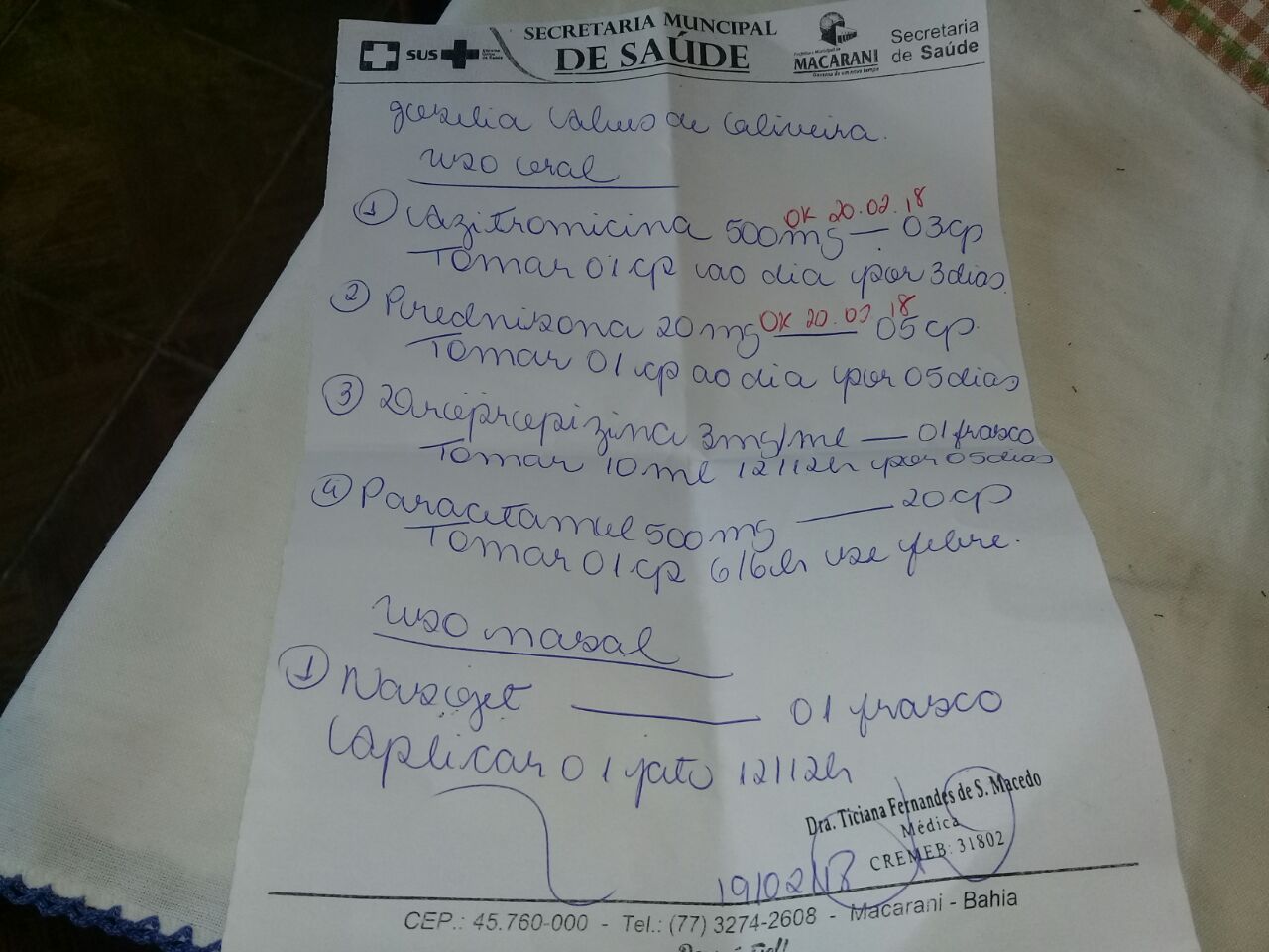 Ticiana, só pede remédios simples da atenção básica, mas nem mesmo paracetamol