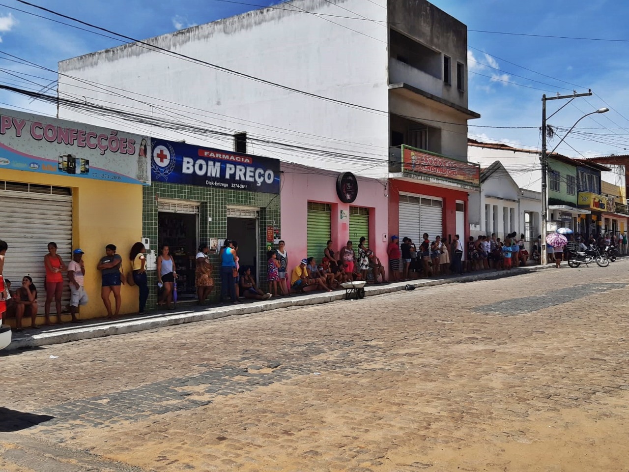 Foi esse o absurdo da situação ocorrida nesta quinta-feira 28/02 mais uma vez na Rua José do Patrocínio, que mais uma vez refletiu o sofrimento dos aposentados, pensionistas, beneficiários do Bolsa Família e até correntistas da Caixa Econômica Federal que tem na Casa Lotérica seu único correspondente em Macarani. A foto que ilustra a manchete desta matéria foi tirada por um internauta às 13h (uma da tarde) e mostra que a fila vai da Casa Lotérica até a esquina abaixo onde fica o ponto de moto táxi.