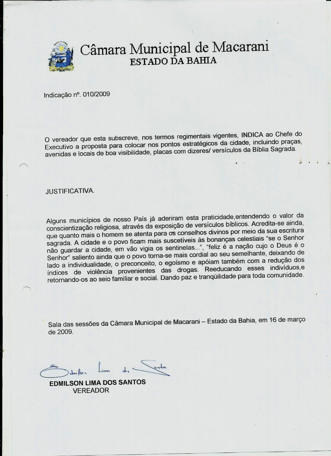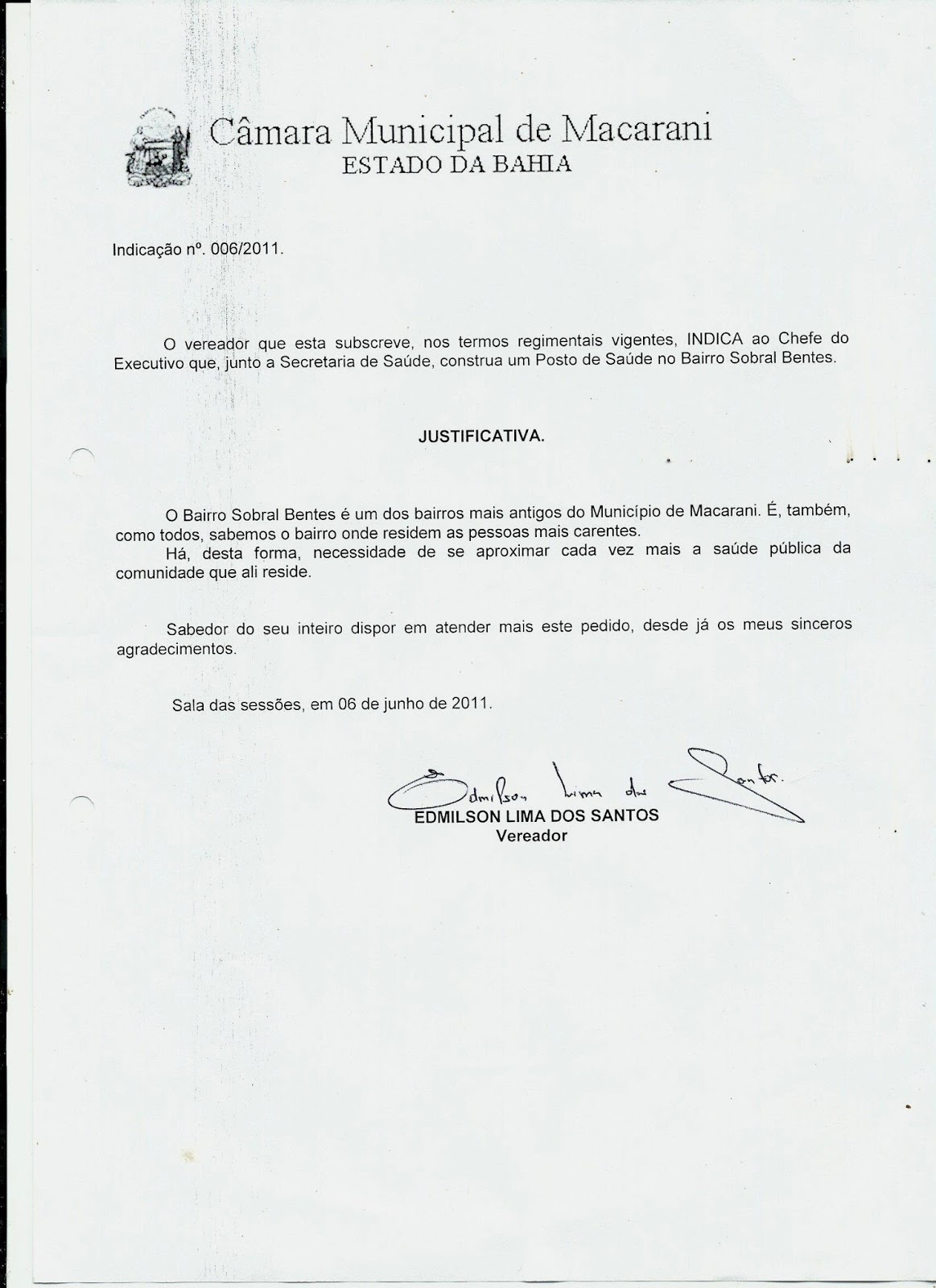 um vereador atuante na defesa dos interesses da população de Macarani. Edmilson