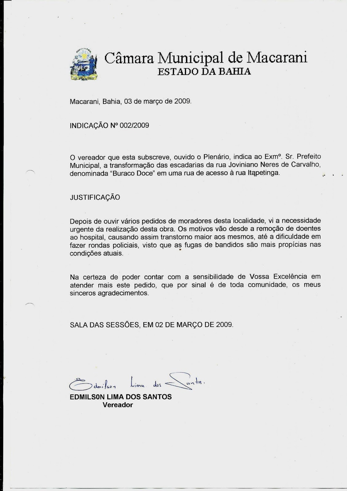 002/2009 O vereador naquela oportunidade já pedia ao executivo