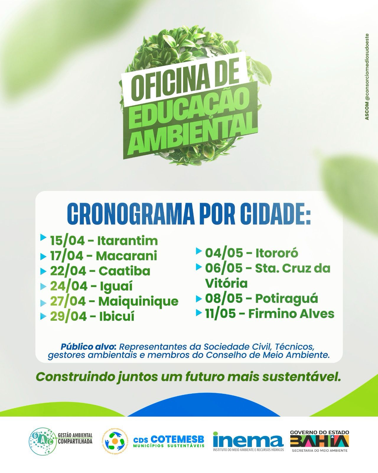 A ação é realizada pelo CDS COTEMESB, em parceria com as Prefeituras Municipais, o INEMA e o Governo do Estado da Bahia, reforçando a importância da união entre instituições para a construção de políticas públicas voltadas ao meio ambiente. A Oficina de Educação Ambiental representa mais um passo importante na construção de um futuro mais sustentável, incentivando a participação ativa da sociedade e o fortalecimento da gestão ambiental nos municípios.
