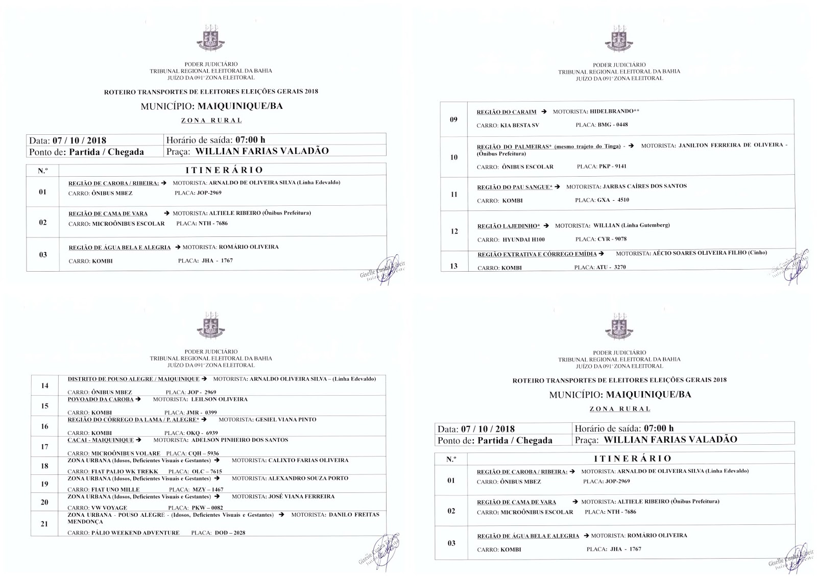 Maiquinique, definiu os veículos oficiais, motoristas e localidades onde serão
