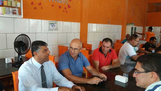 O prefeito Paulo Construção esteve reunido com os empresários Almir Santos e o sr.