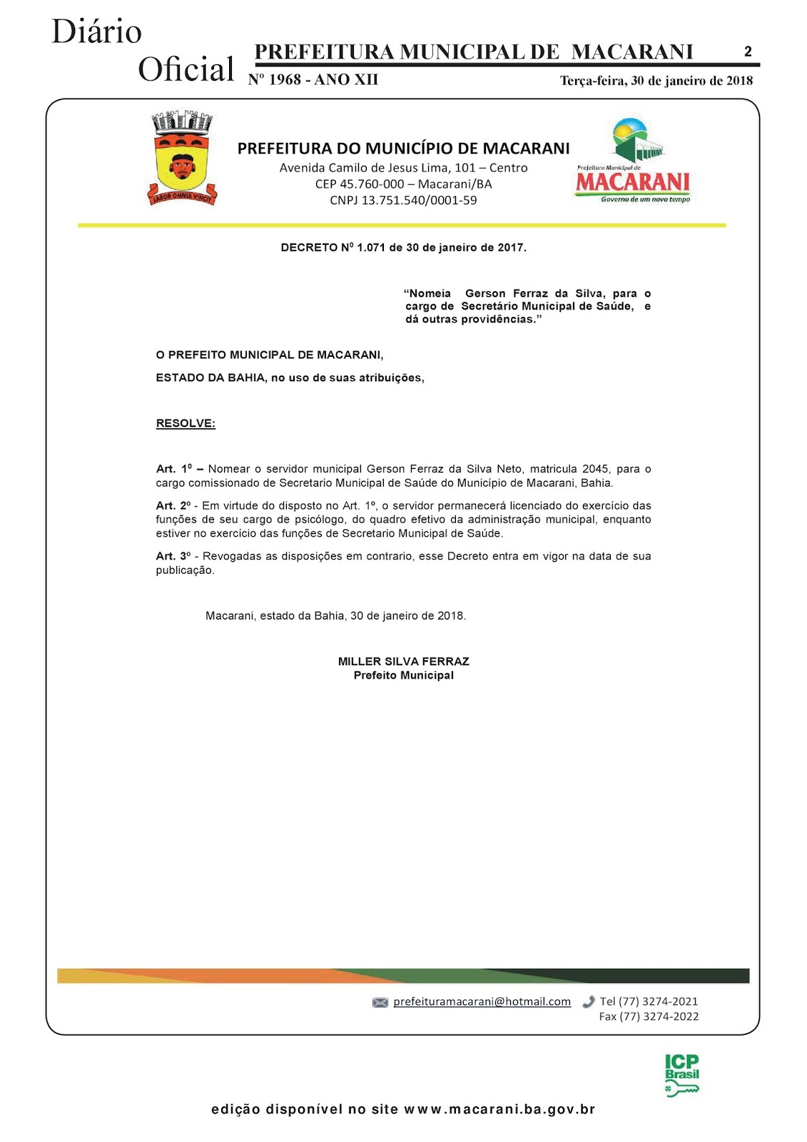 pertence de fato e por direito de nomeação através do Decreto Municipal 1071 de…30 de janeiro de 2017? Acreditem, é assim que está a