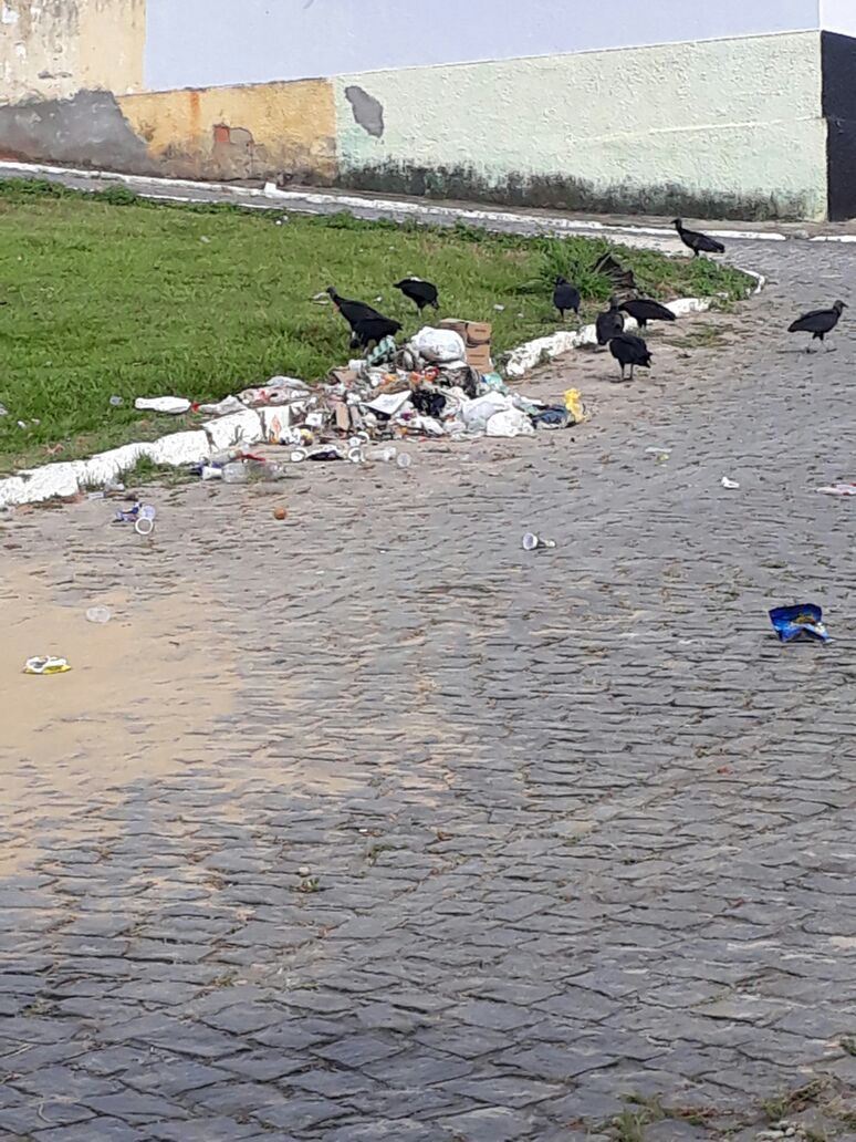 fica desta forma a praça e quando venta o lixo espalha na praça toda”. Informou morador,