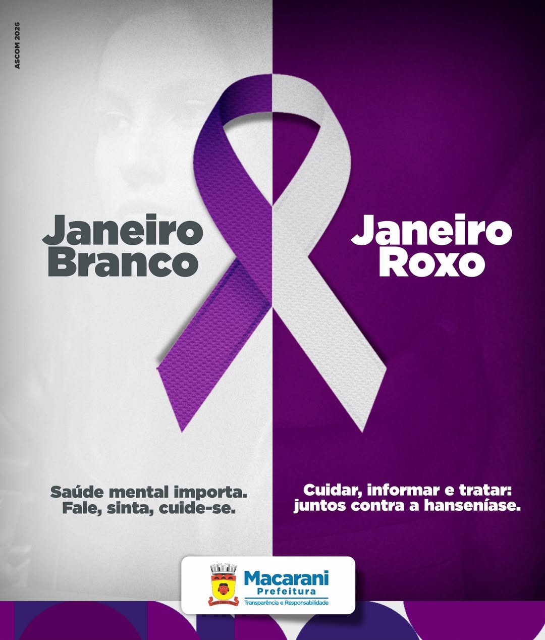 Janeiro Branco nos lembra que saúde mental importa: falar, sentir e cuidar de si é um ato de coragem. Janeiro Roxo reforça a importância de informar, prevenir e tratar a hanseníase, combatendo o preconceito e fortalecendo a saúde pública. Cuidar da mente é tão essencial quanto cuidar do corpo.