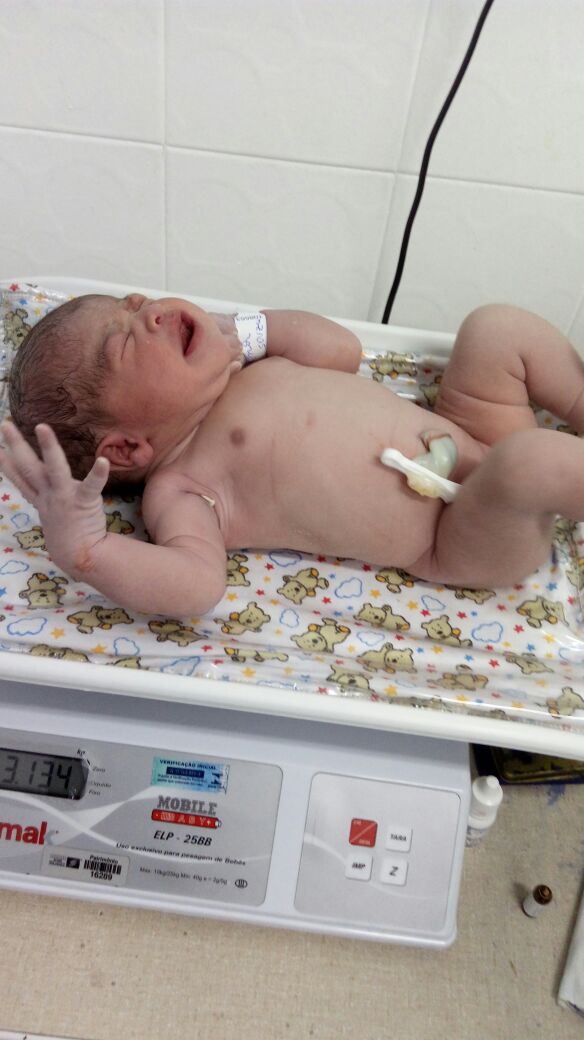 veio ao mundo de parto cesariano, pesando três quilos e 134 gramas, bem saudáveis,
