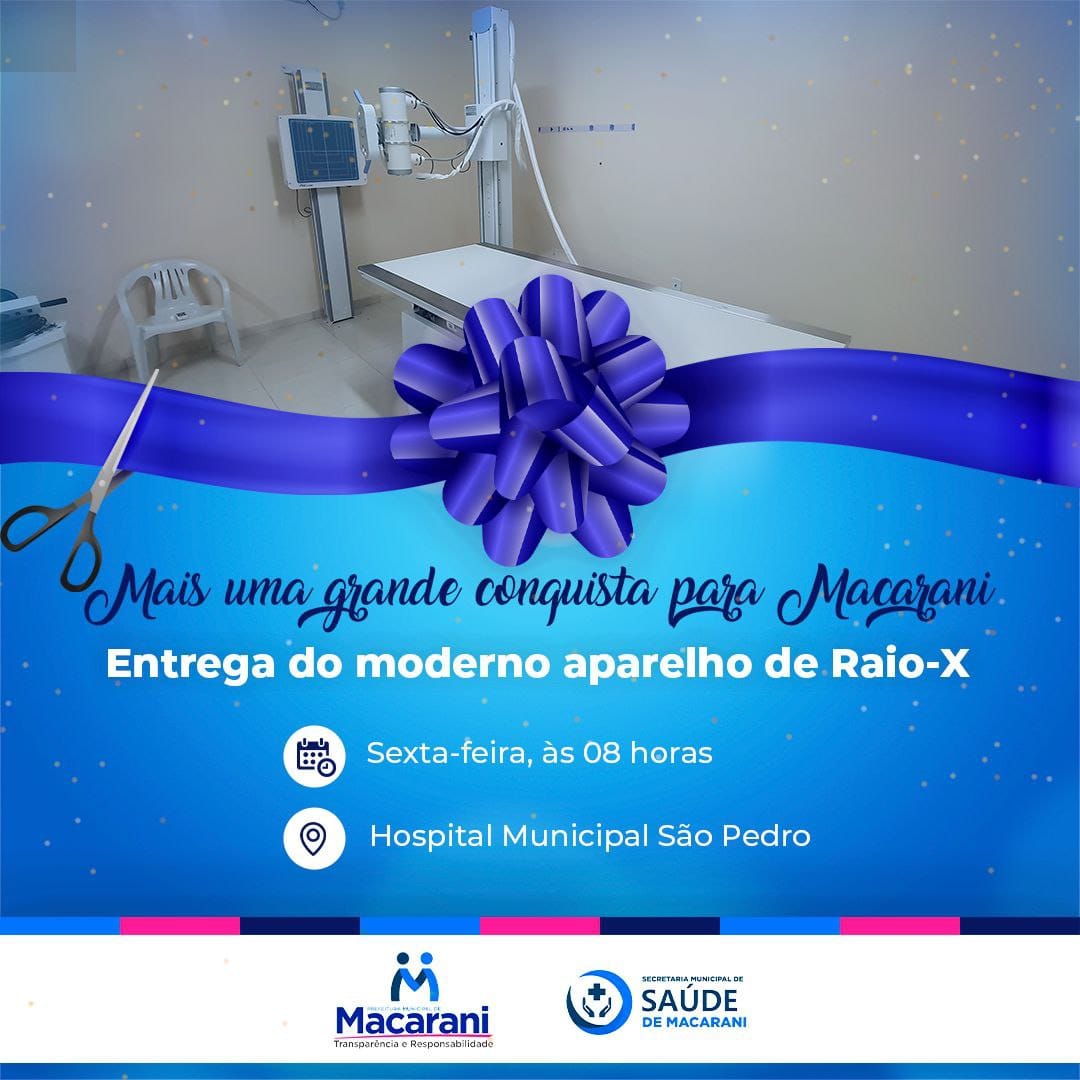 Uma grande conquista para a saúde da cidade um grande sonho dos macaranienses se torna realidade. Na manhã dessa sexta-feira 02 de setembro, a Prefeita Selma Souto entregou oficialmente instalado e funcionando o novo e moderno aparelho de Raio X para o Hospital São Pedro.