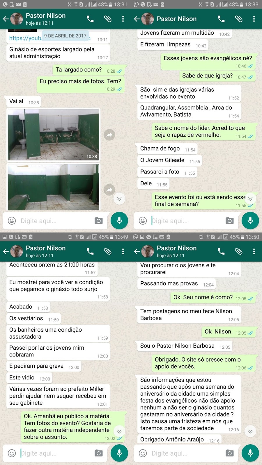 WatsApp, em caráter privado as fotos publicadas na matéria sobre o mutirão de