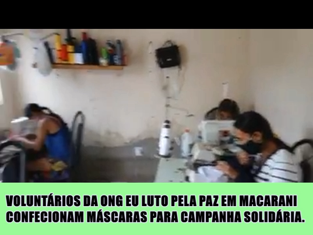 E esta semana a ONG eu Luto Pela Paz, através de suas voluntárias está confeccionando máscaras que serão comercializadas aos custo de R$ 2,50 (dois reais e cinqüenta centavos), cuja renda arrecadada será revertida para custear outras campanhas da ONGN em prol de mais pessoas carentes. Confiram no vídeo o trabalho que está sendo realizado.