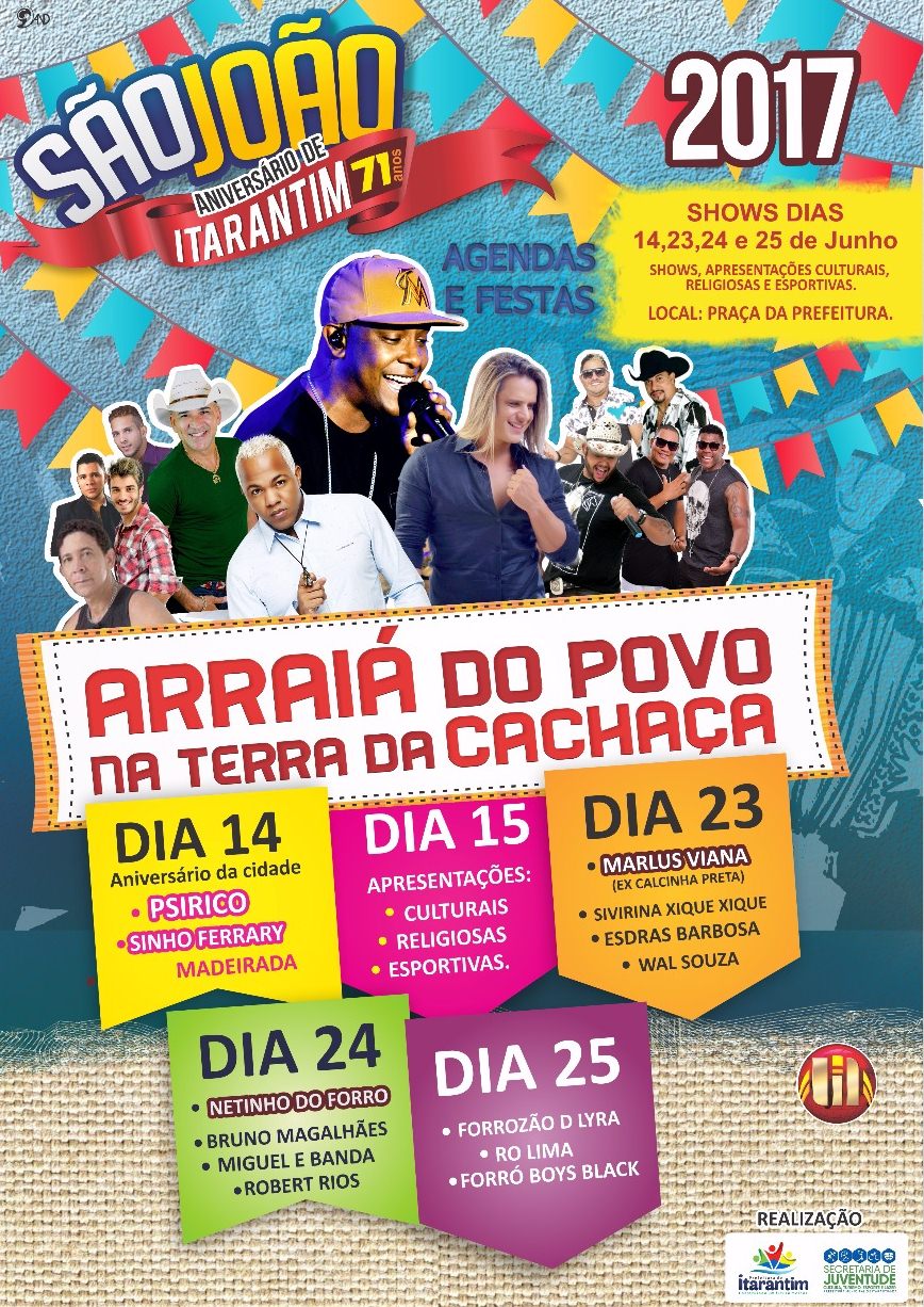 a cidade da cachaça boa está em festa! Nesta quinta-feira (15), o município de Itarantim comemora o seu 71º aniversário de emancipação