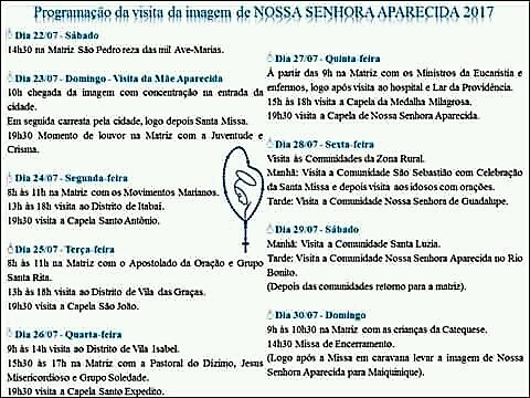 se despedirá da nossacomunidade católica da qual também é a nossa Padroeira.