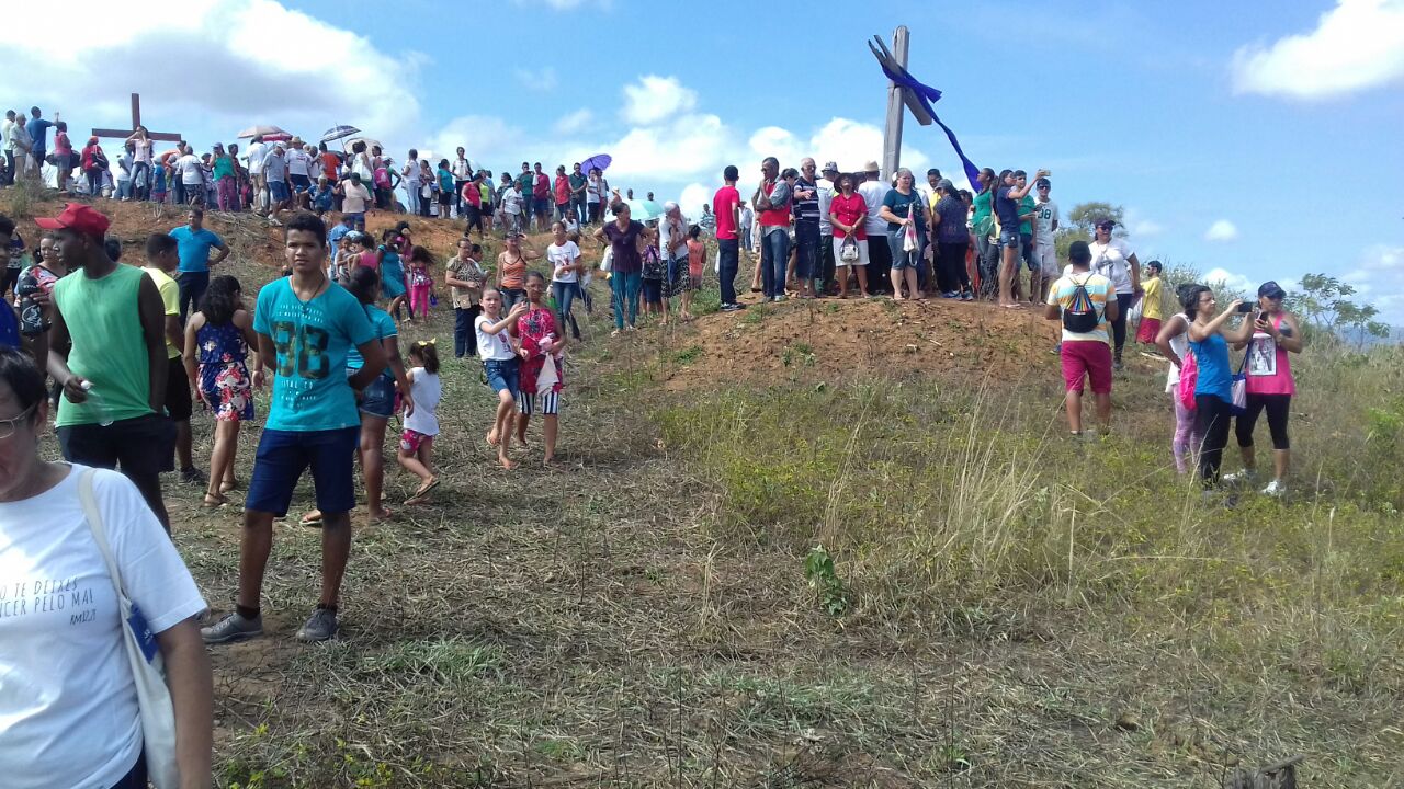 subiram a pé a ladeira onde ao chegar fizeram várias orações na celebração