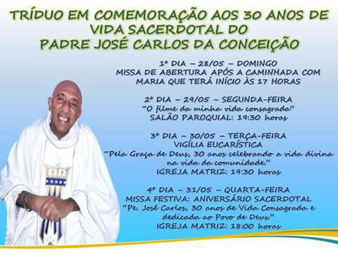 a programação do Tríduo Religioso, começará no próximo dia 28 (domingo) com um