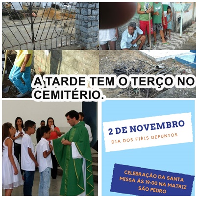 mais reza do Terço, só que neste horário será feito no Cemitério da cidade, com a organização da Comunidade Santo Expedito.