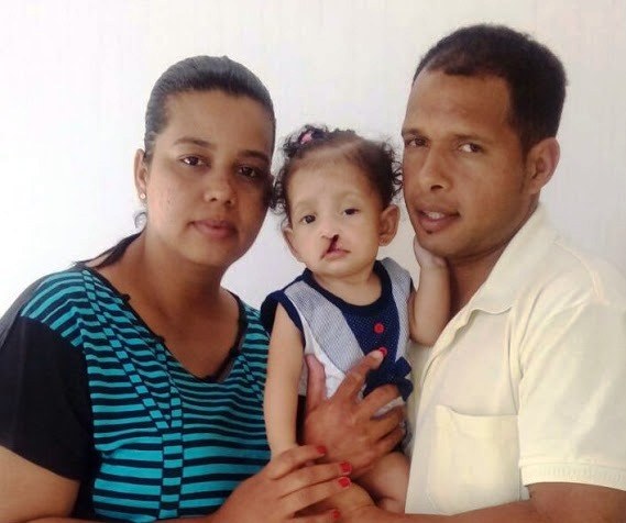 fazendo uma campanha para conseguir uma cirurgia para a criança, que nasceu com