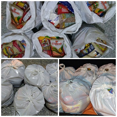 voluntários levaram e entregaram aos Garis e suas famílias seis cestas básicas formadas pelas