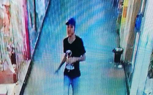 dois tiros, um no pescoço e outro no ombro. Câmeras de vigilância conseguiram