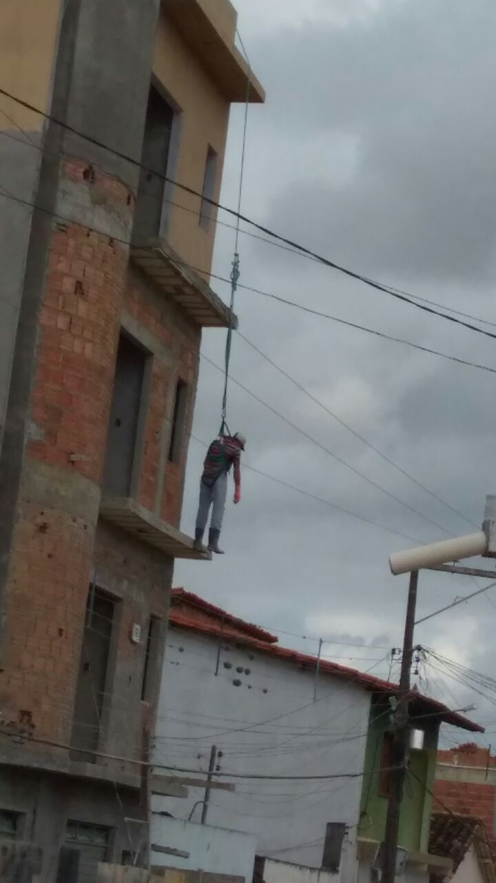 andaime, ficou pendurado. Denil foi socorrido, levado ao hospital mas não
