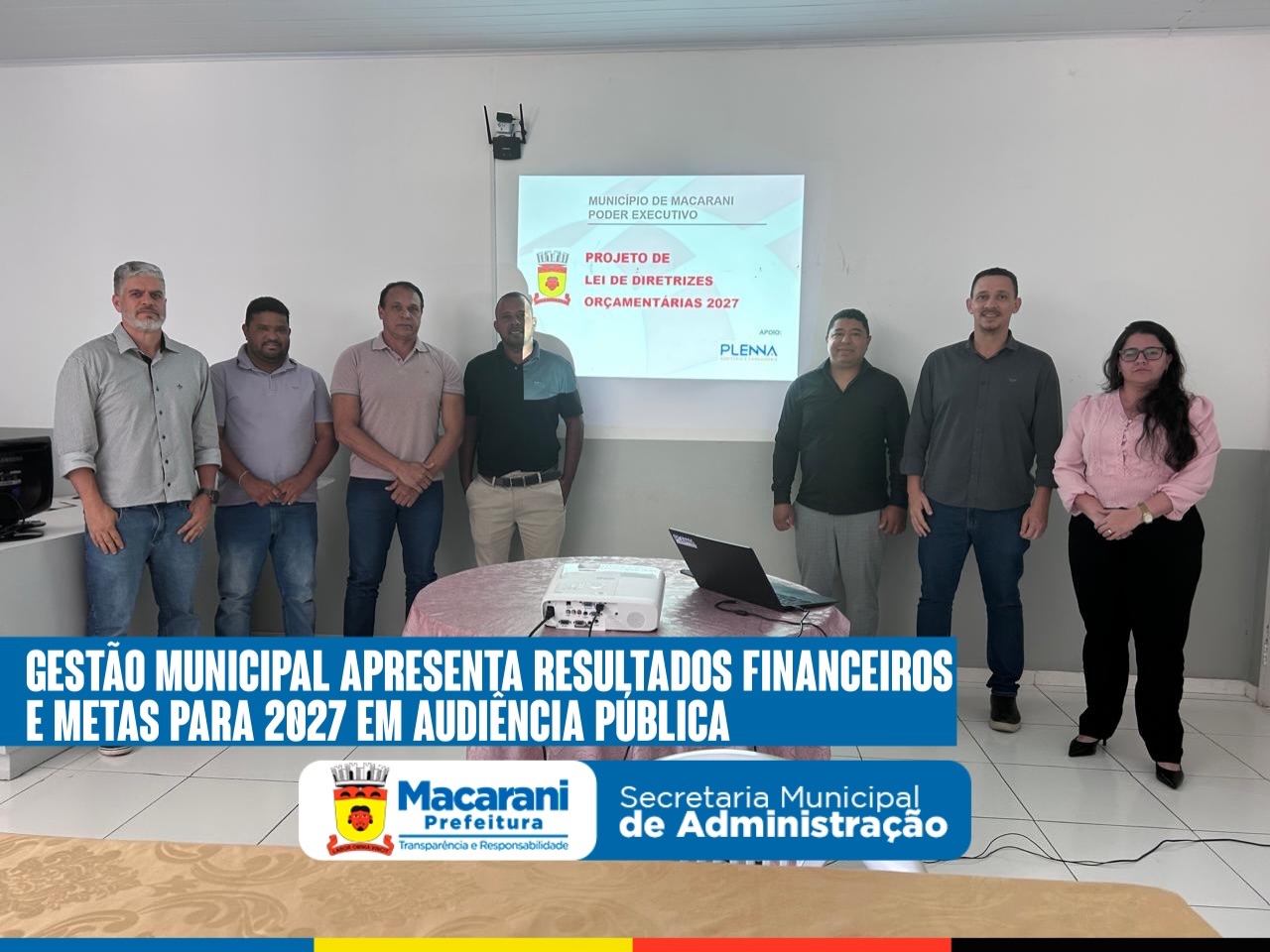 A Prefeitura de Macarani, gestão Transparência e Responsabilidade realizou no auditório da Ação Social de Macarani no último dia 12 de março a primeira audiência pública de 2026. O objetivo do encontro com a participação aberta à população foi o de detalhar para todos o que feito no último trimestre de 2025 e mostrar como está o planejamento para este ano de 2026 e também as diretrizes orçamentárias já para 2027. A Prefeitura de Macarani realizou a Audiência Pública referente ao 3º Quadrimestre de 2025 e à Lei de Diretrizes Orçamentárias (LDO) 2027, reforçando o compromisso com a transparência, responsabilidade fiscal e participação cidadã.