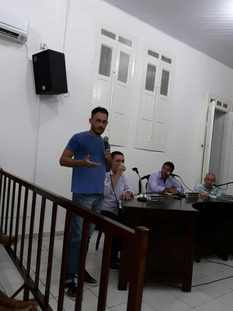 Câmara, o Vereador Glauber costa cedeu a palavra ao jovem, Jefferson Almeida, que juntamente com DaniloBrito e Anderson Silva, são os desenvolvedores do ELITE MONSTER JIU-JITSU, e que